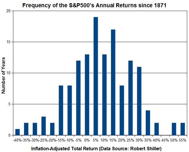 Market uncertainty The dawn of a new year gives birth to a plethora of predictions. Stock market prognostications are entertaining, but they should taken with a big grain of salt. To see why, I begin with a moderately optimistic forecast for the S&P 500 which calls for 6-per-cent gains in 2013 after adjusting for inflation and including dividends. Six per cent happens to be a little below the index's average annual real return of 8.2 per cent since 1871 based on data from Professor Robert Shiller. What are the odds the S&P 500 will gain close to 6 per cent in 2013? They are actually quite slim. To see the range of possibilities it's useful to look at past returns, which are displayed in the accompanying graph. Each bar on the graph represents the number of years the S&P 500 achieved total returns, adjusted for inflation, closest to the various return targets. ![]() For instance, the height of the 5-per-cent return bar represents the number of years the S&P 500 gained between 2.5 per cent and 7.5 per cent. Similarly, the 10-per-cent bar covers the 7.5 per cent to 12.5 per cent range. As it happens, the most common return range is the one closest to 5 per cent, which was achieved on 19 occasions since 1871 or about 13.5 per cent of the time. As a result, it seems unlikely the index will gain 6 per cent next year. History shows much larger, or smaller, returns are far more probable. Such wild swings are often ignored when discussing the long-term average results for the index. But the average is made up of a series which includes some giant moves. For instance, the index gained 53.2 per cent one year and it has lost 38.0 per cent in another. (The eagle-eyed will note these results aren't based on strict calendar year-end figures and are instead offset by a few weeks.) Unfortunately, most stock market forecasts don't include an indication of the uncertainty of the forecast itself. Problem is, providing them would cast the forecast in a much different light. To highlight the issue I'm going to add a plus, or minus, range to the 6-per-cent return prediction, which should be good 19 years out of 20. The approach should be recognizable by anyone who's familiar with the results of public opinion polls. To do so, I simply go to the historical data and cut out the extremes at either end. It turns out the S&P 500 has provided real returns between minus 23 per cent and plus 35 per cent in 19 years out of 20. The range spans a whopping 58 percentage points centred on, as it happens, 6 per cent. Putting it all together, S&P 500 is expected to generate real returns of 6 per cent plus or minus 29 percentage points next year, which should be good 19 times out of 20. The other one time ought to result in much larger gains or losses. Problem is, this prediction isn't particularly useful for planning purposes. But the stock market tends to be a unpredictable place and wanting it to be otherwise doesn't make it so. Even worse, I've likely underestimated the level of uncertainty involved because the uncertainty range is based on a relatively short - statistically speaking - historical record. It is entirely possible 2013 will prove to be a record-breaker. As a result, when you're next faced with a stock market prediction, focus on the uncertainties involved just as much as the expected returns. You may discover the prediction isn't really much of a prediction at all. First published in the Globe and Mail, January 2 2013. |